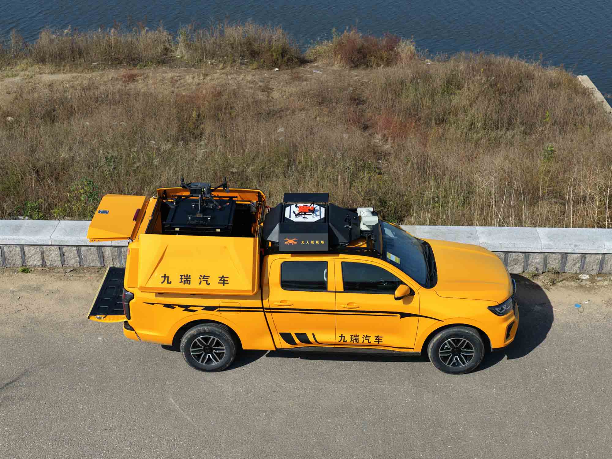 九瑞河道無人機(jī)巡檢車是一款融合“地面移動(dòng)平臺(tái)+空中無人機(jī)群+智能算法中樞”的一體化水域監(jiān)測(cè)裝備,專為解決傳統(tǒng)水利巡檢效率低、成本高、覆蓋不全面等痛點(diǎn)而設(shè)計(jì)。該產(chǎn)品以智慧技術(shù)為核心驅(qū)動(dòng)力,通過雙機(jī)協(xié)同作業(yè)與全自動(dòng)流程管控,實(shí)現(xiàn)從水域動(dòng)態(tài)監(jiān)測(cè)、異常目標(biāo)識(shí)別到數(shù)據(jù)實(shí)時(shí)研判的全鏈條智能化,重塑水利監(jiān)測(cè)新標(biāo)桿。