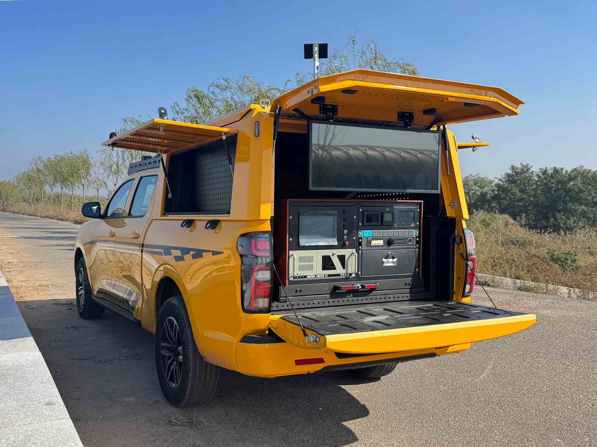 地面移動(dòng)平臺(tái):配備全地形越野底盤,具備強(qiáng)大的復(fù)雜路況適應(yīng)性,可輕松應(yīng)對(duì)河道沿岸泥濘、坡度等復(fù)雜地形,確保設(shè)備在各類水域周邊高效部署。車輛集成雙電倉秒換電系統(tǒng),支持無人機(jī)快速補(bǔ)能,配合車載供配電模塊,可實(shí)現(xiàn)72小時(shí)不間斷作業(yè),突破傳統(tǒng)無人機(jī)續(xù)航瓶頸。駕駛艙副駕設(shè)置智能操控終端,實(shí)現(xiàn)一鍵完成無人機(jī)起降、數(shù)據(jù)傳輸、智能分析等核心操作,降低人工操作門檻。