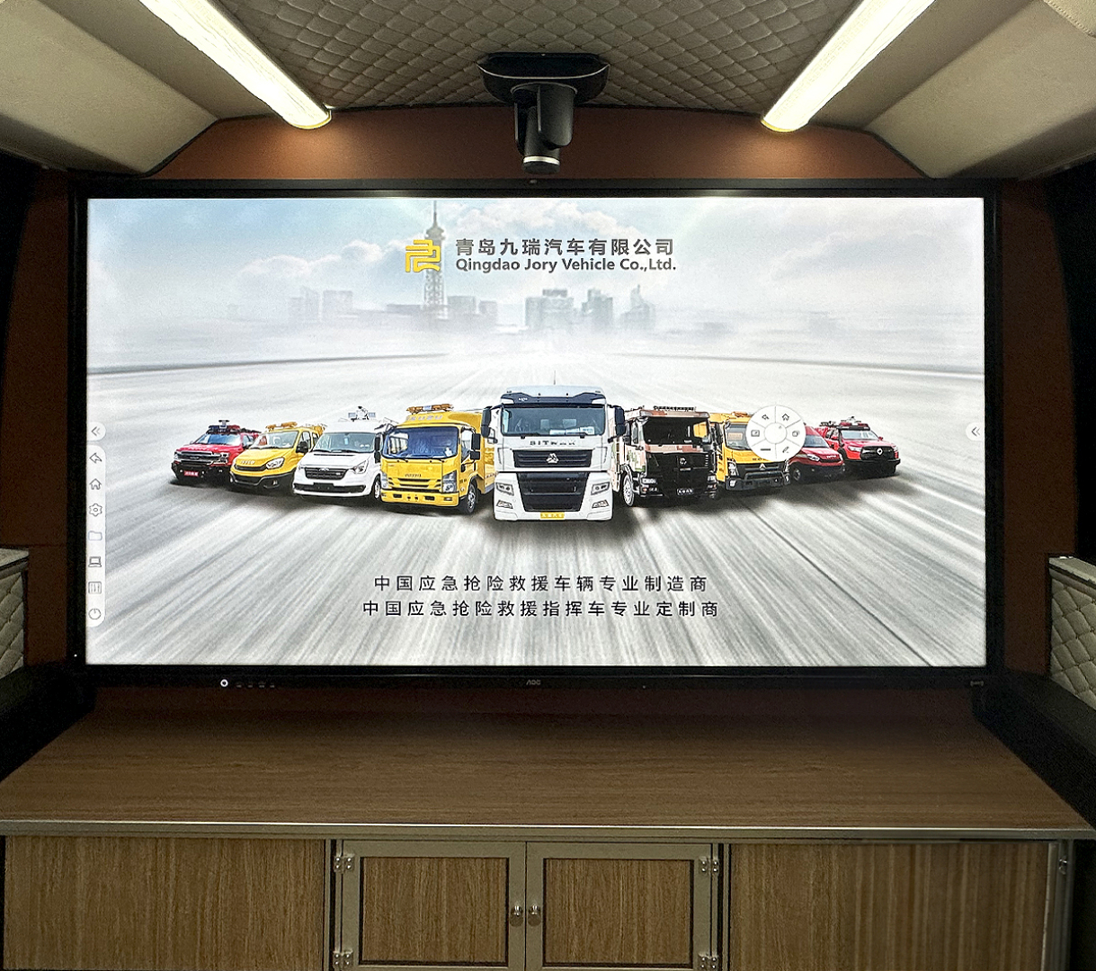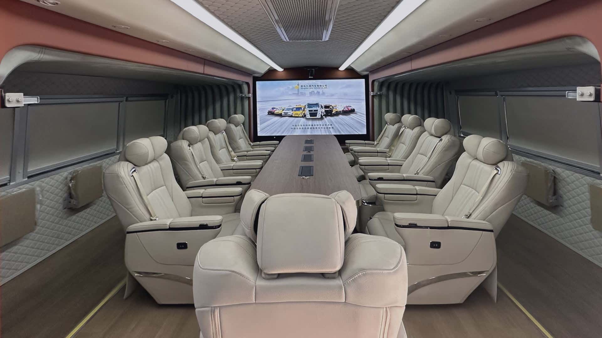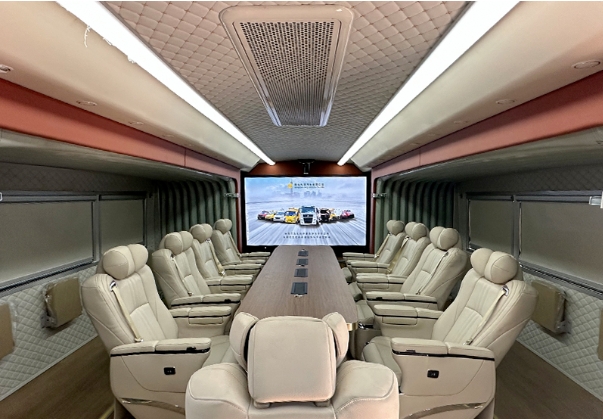 采用雙側(cè)拉廂式艙體,內(nèi)設(shè)多功能會(huì)議桌、9把高端定制會(huì)議椅、10把折疊座椅,空間寬敞,可滿足19人同時(shí)會(huì)議功能。